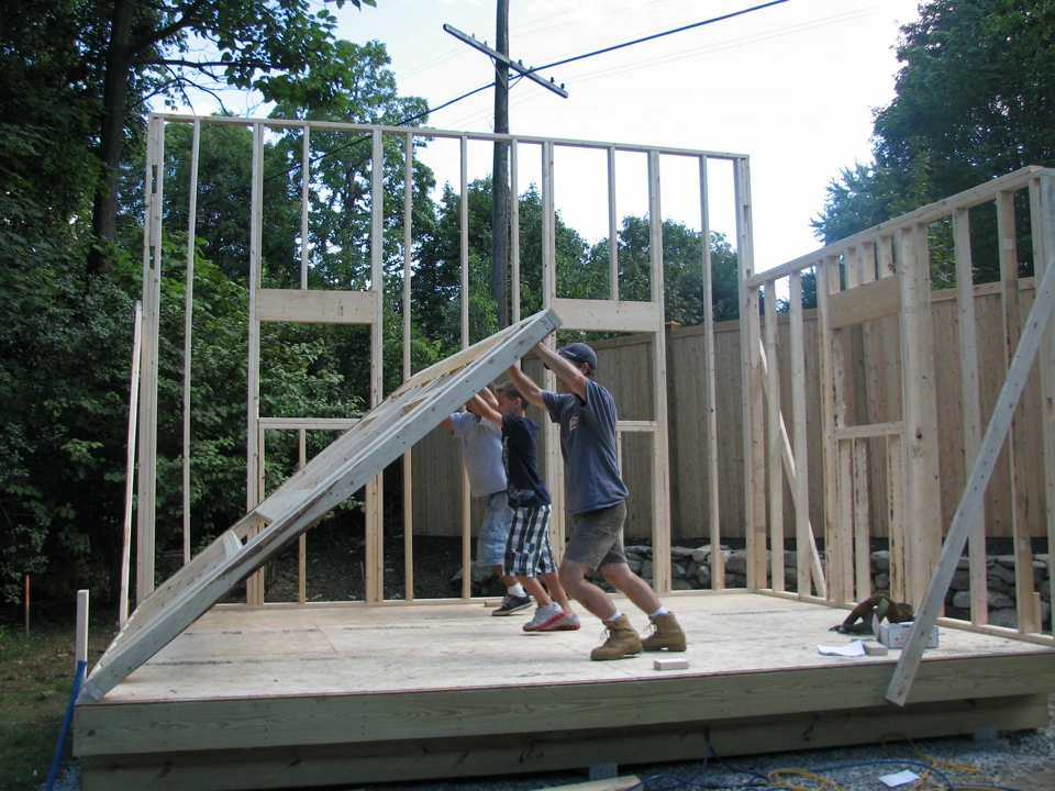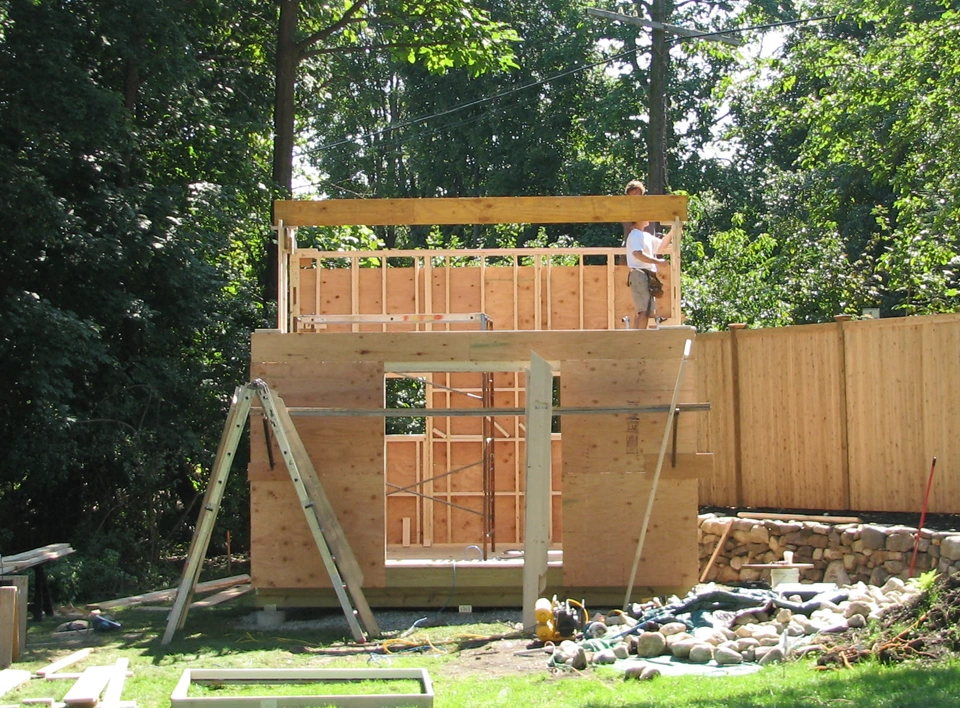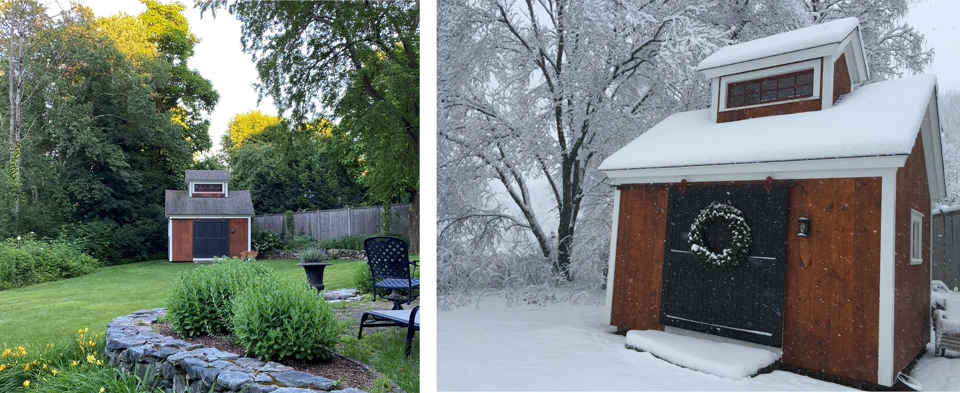 One of the most enjoyable projects was the design and construction of a workshop at the edge of our yard. The building style is meant to resemble a sugarhouse, as a tribute to my childhood growing up in Vermont. Our kids refer to it as the "munchkin house", so perhaps our design was a bit off scale, or perhaps we fed them too many Dunkin' munchkins as they grew up. This is still unclear.