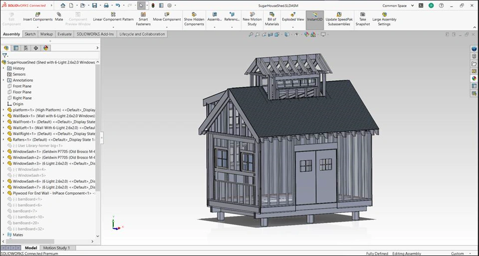 Once we decided to pull the trigger, we spent months testing various style and layout choices in SOLIDWORKS as we worked through all the details. However, the functional design evolved over many years and much of it was based on the many aggravations we experienced when using an old, leaky, and small shed as our “workshop”. Some of the key elements are: