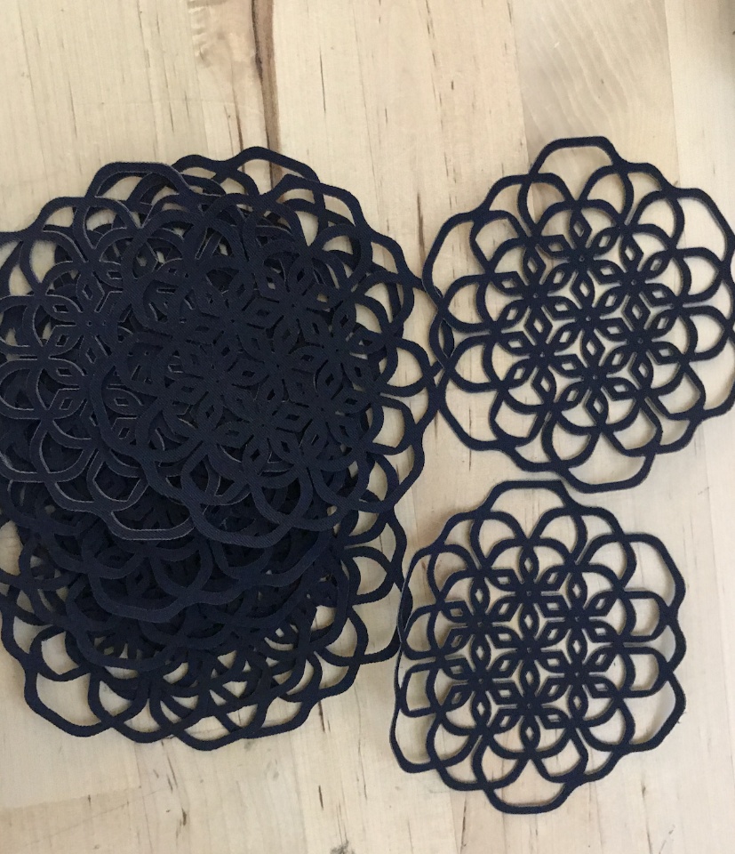 In order to learn textile laser cutting, I designed this snowflake-like “flower” and laser cut them on a linen fabric at the 3DExperience Lab in Boston! Thanks to @OA's help, I learned how to optimize the CO2 laser cutting parameters on fabrics. It only took 1 minute to cut each piece, and the result was beautiful!