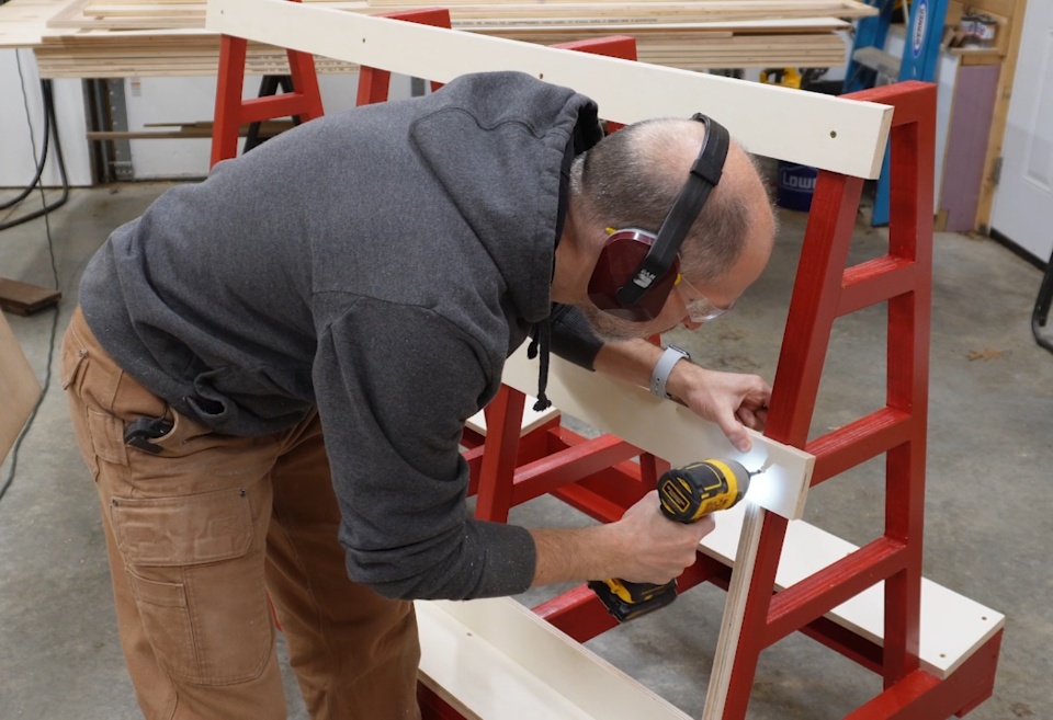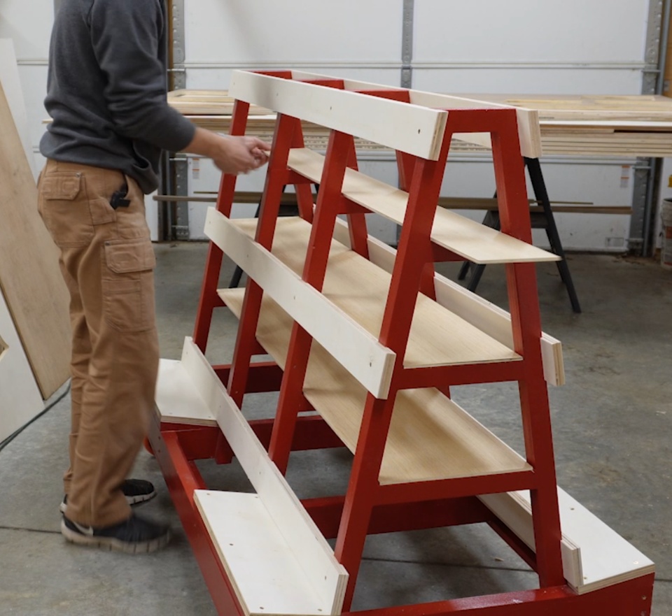 The shelves and rails are made of more plywood scraps. They're just a series of narrow strips that create smooth surfaces for your material to rest against.