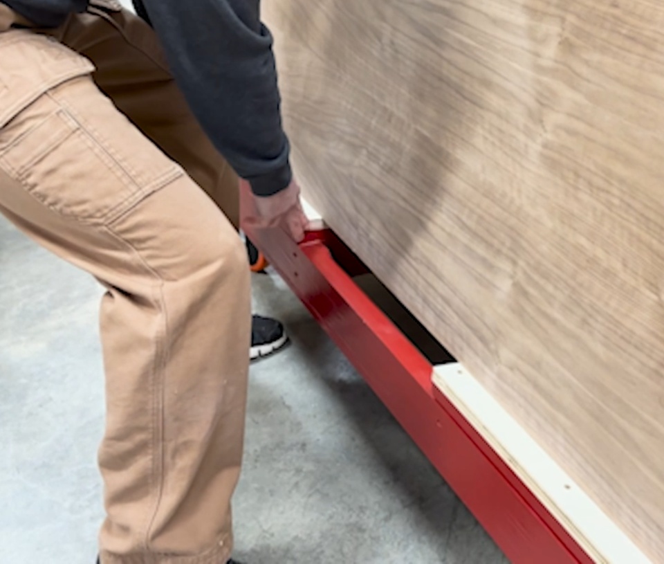 One small detail we added was this gap in the floor on the side where we'll keep full sheets. It lets me get my hand under the center of mass of a sheet and easily lift it (with my legs, not my back 😉).