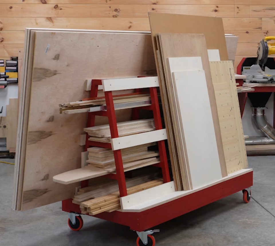 The build came out great, and our shop is much more tidy! We can access our lumber wall and CNC again, and are excited to put this cart to good use.