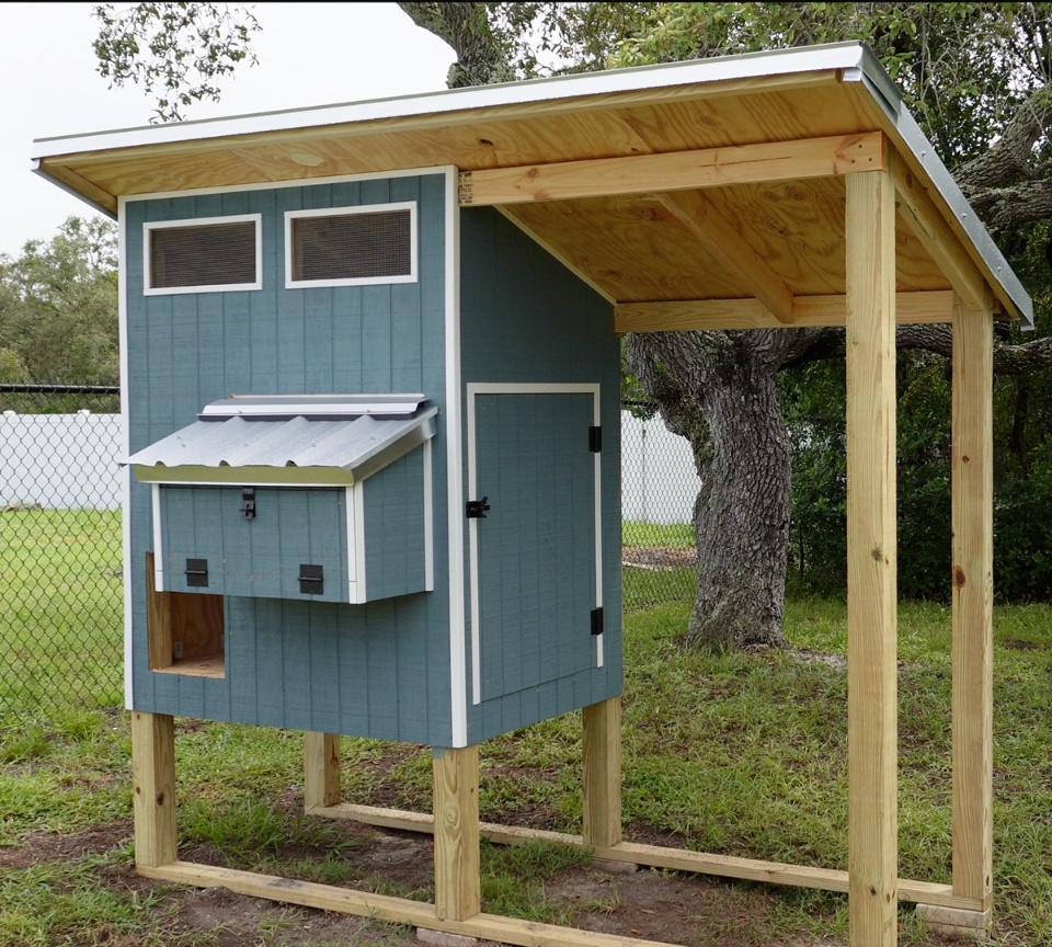 Final construction happened way out in the back of my parent's yard. We endured sweltering temperatures, afternoon downpours, and long work days, but in the end we had a beautiful chicken coop to be very proud of!