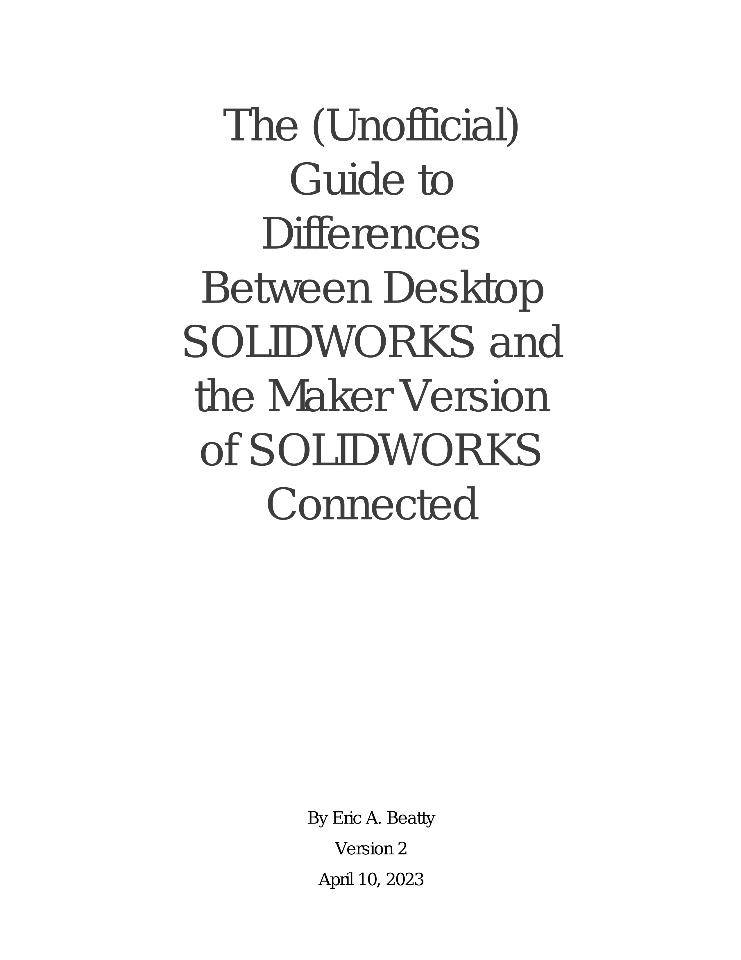 Hello friends. I'm not sure if an official list of differences exists. I've been using the Maker version of SOLIDWORKS Connected (aka 3DEXPERIENCE SOLIDWORKS) since it was first made available in August, 2021 and here's what I've been able to compile.