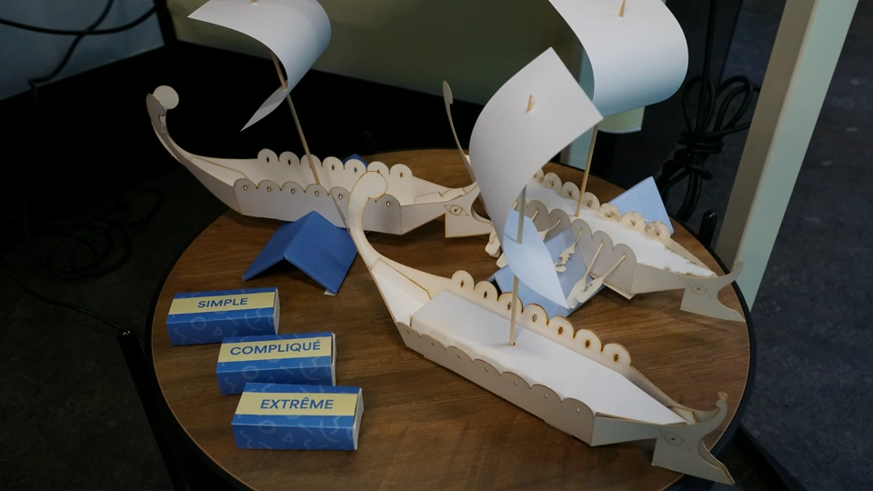 For my master I designed an adaptation guide for migrants. There is a boat in it to assess how willing or ready you are to leave for a foreign country.