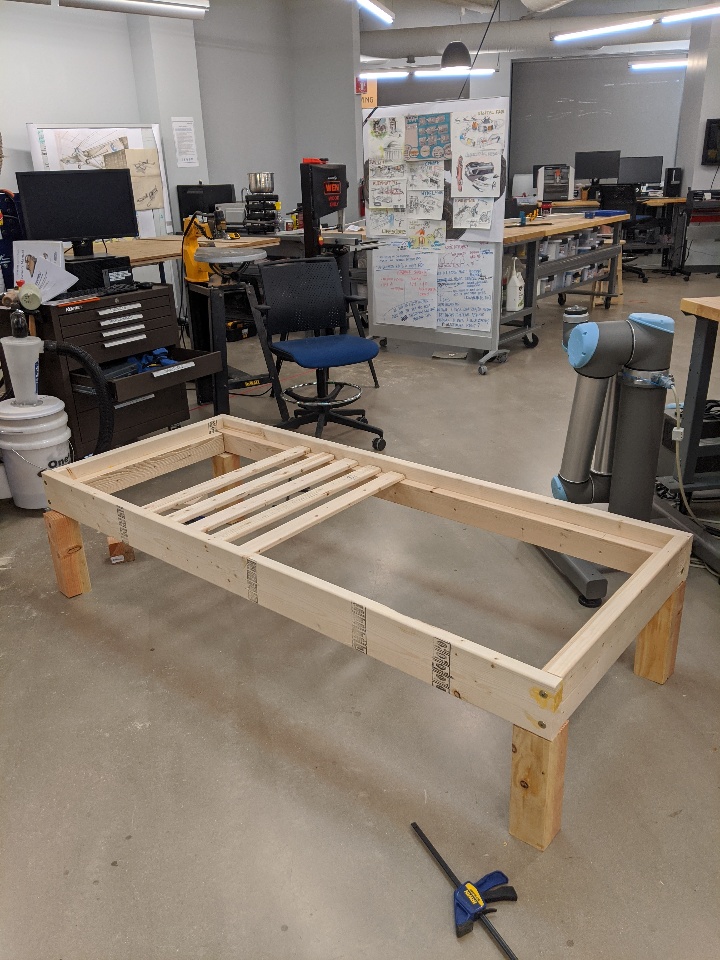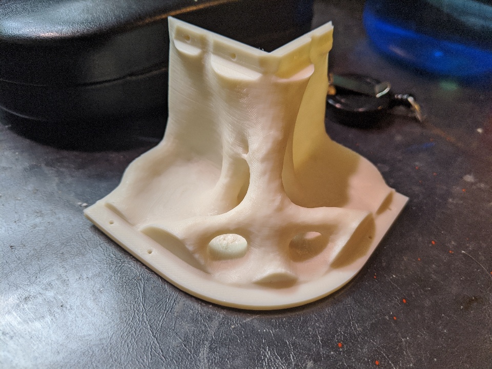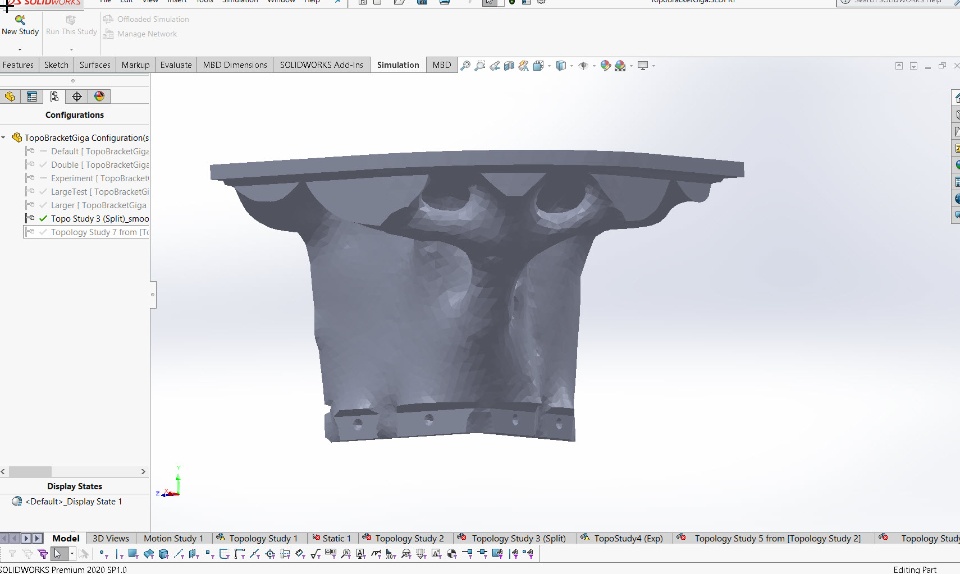 I wanted to share a Daybed project I've continued working on the past month. In the spirit of #DIYatHome, I was able to do a test run of brackets to mate the legs to the main frame. I built the main frame of the bed over a couple of lunches and nights in the Waltham Fablab. I wanted to take advantage of the Topology study capabilities in SW Sim to design some brackets. After the study, I exported the result as a smoothed mesh body.