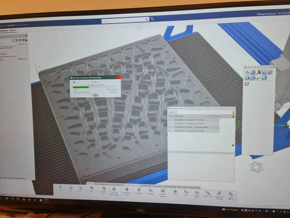 Material secured, now onto the milling. And this is where things got tricky… Working with Delmia was a struggle – I tested various machining strategies, each with its pros and cons, but the biggest headache was generating the G-code. The process took over 6-12 hours and had a nasty habit of crashing midway… which meant starting over.
