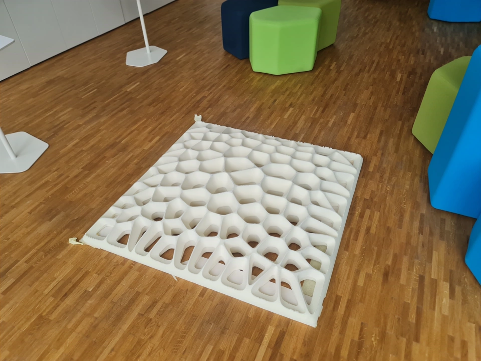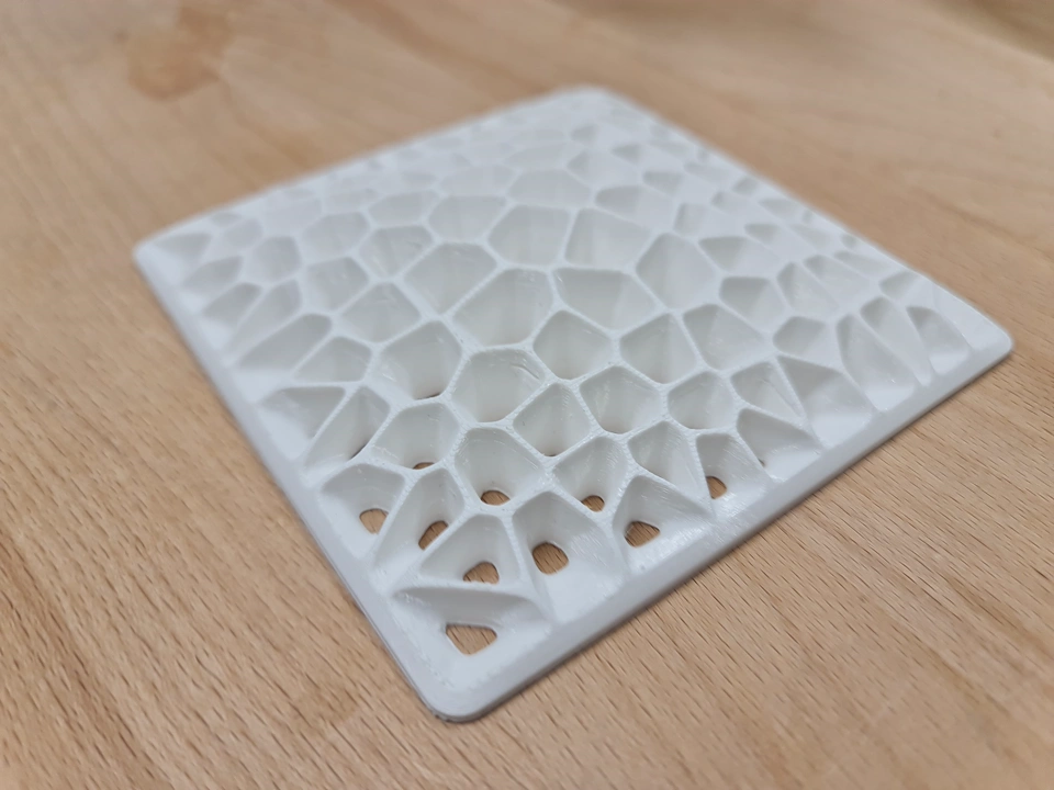 So, I went for a simpler square shape, but to keep things interesting, I gave it a bit of a “pillow” effect for better light distribution. I decided on 100 independent, addressable light points. Their layout was based on the sunflower pattern – more spaced out in the center, denser towards the edges. From this layout, I generated a Voronoi diagram, which became the foundation for my 3D model.