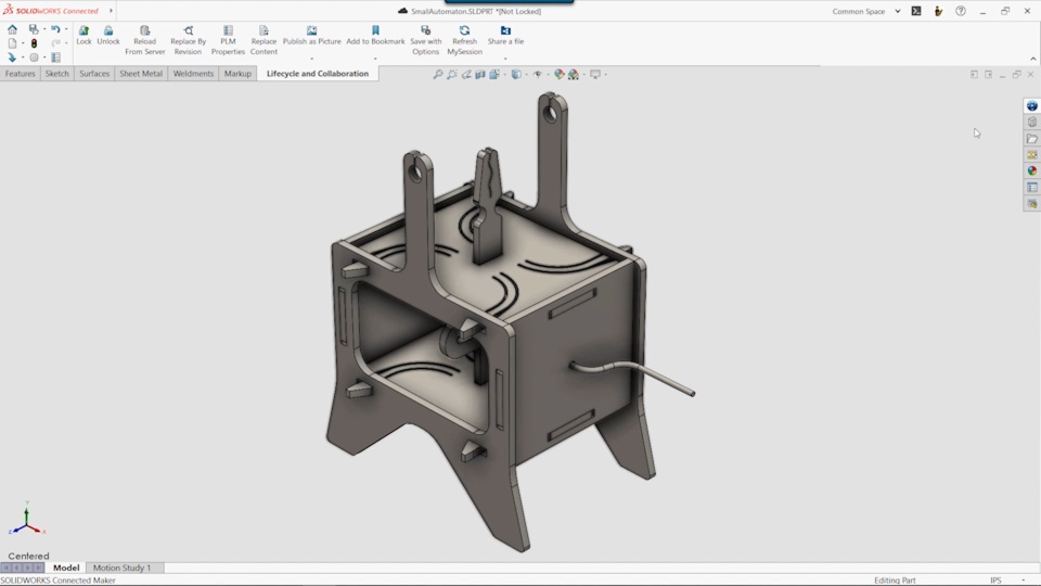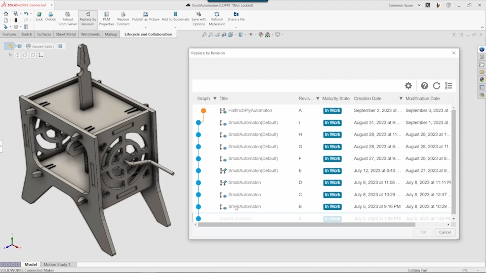As the design evolved, we changed all sorts of things. The joints evolved from short straight spring hooks, to long curved ones. We used the built-in data management tools to capture revisions of the design every step of the way.