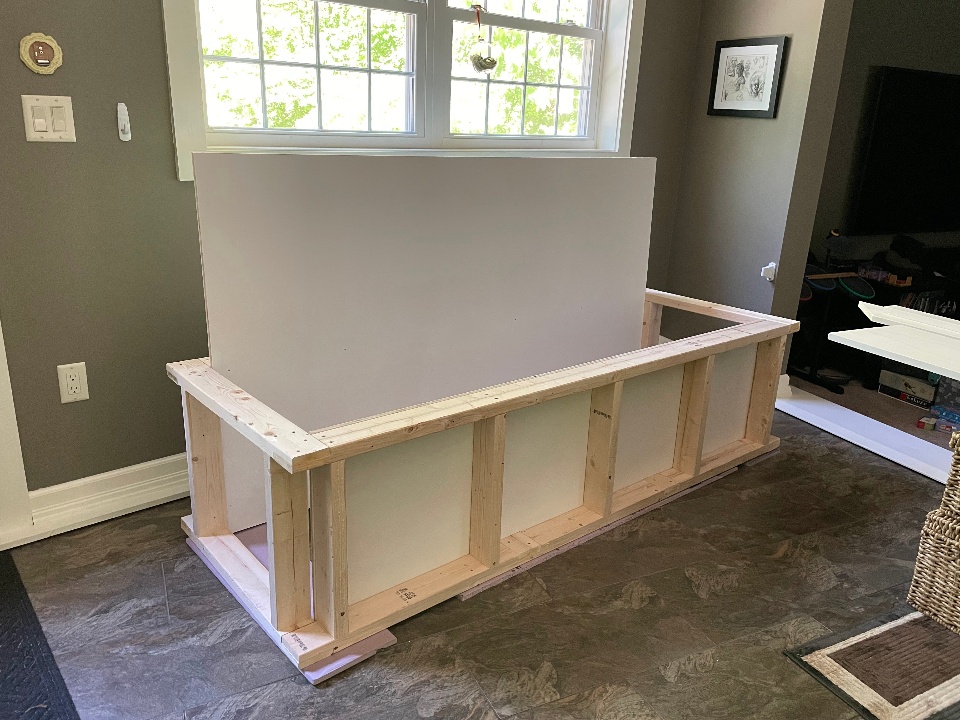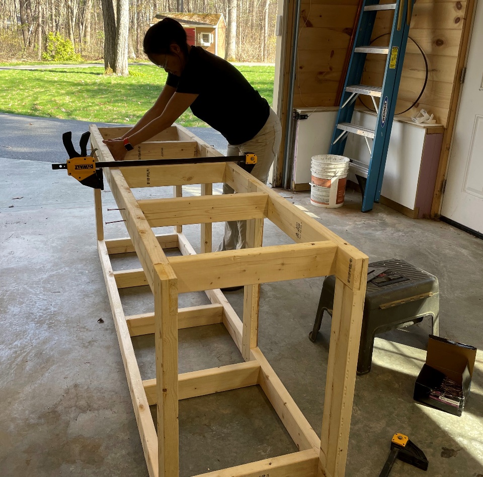 We cut and assembled most of the structure in the garage, but moved it into the house before it got too heavy.