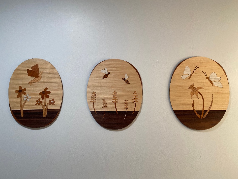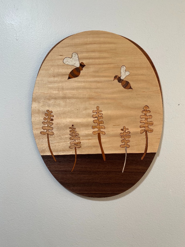 I have been working on some laser cut wood “paintings”. These paintings are made from laser cutting different veneers and gluing the pieces together like a piece. These are the final images of my first attempt at wood paintings and I certainly know how to improve the gluing process for next time!