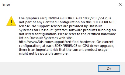 Every time I fire up Shop Floor Programmer on my home PC, I get this message. I understand it isn't a validated GPU, but it's very annoying. If I could permanently dismiss this for *all* 3DX Native Apps, that would be much appreciated.