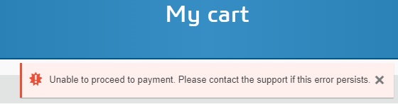 "Unable to proceed to payment. Please contact the support if this error persists."