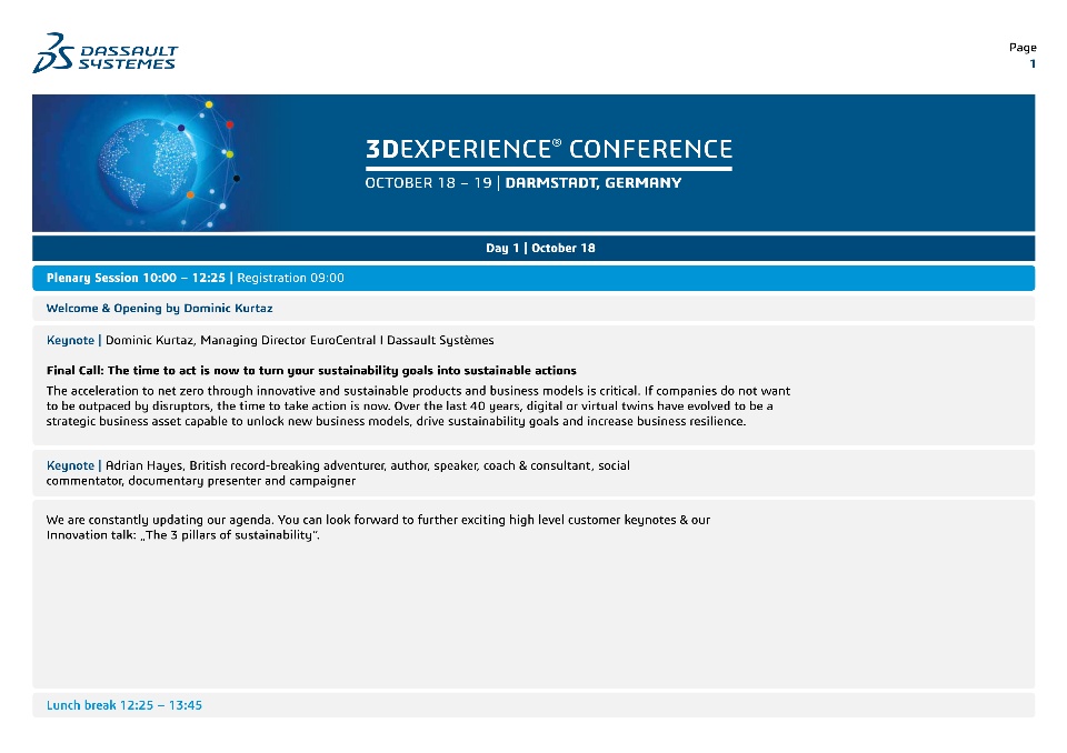 Experience how to turn ideas into actions and how to turn sustainability into an opportunity for your company at the 3DEXPERIENCE Conference in Darmstadt.