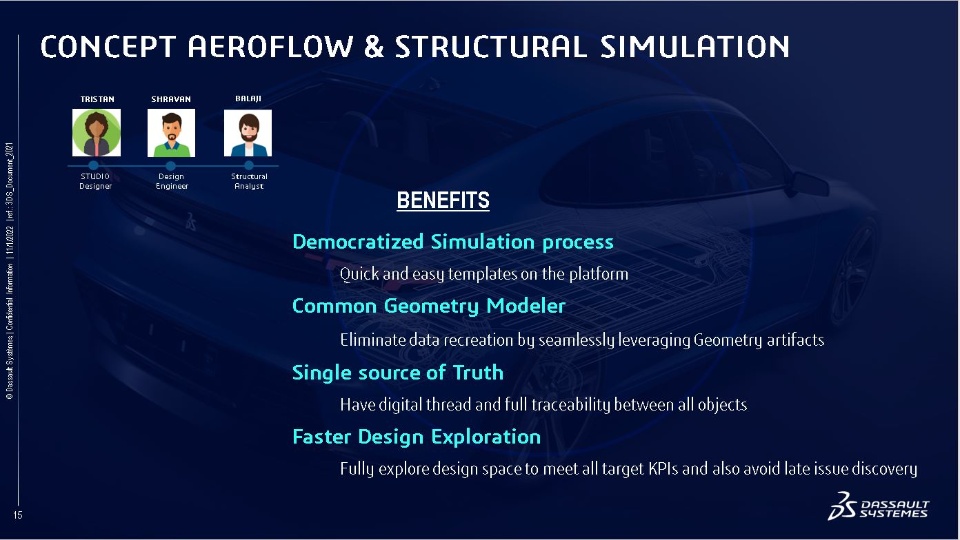 In this presentation, we will demonstrate the power of common geometry modeler across different CATIA applications, which will bring styling and conceptual design together further executing multi-physics simulation and exploration by leveraging SIMULIA applications, to validate functional requirements