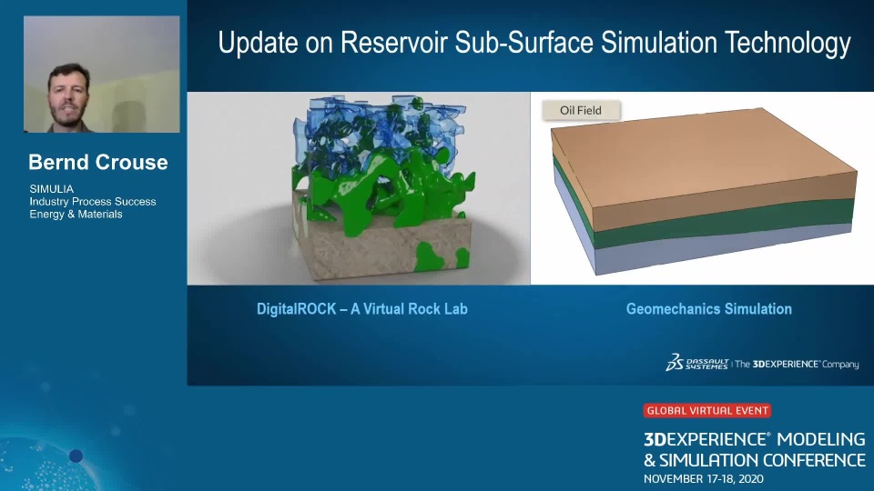 The technology in the Energy and Materials industry evolved significantly in the last few years. This presentation provides an update on multi-physics and multi-scale sub-surface technologies including two IPEs, DigitalROCK and Geomechanics simulation. While DigitalROCK is an IPE to characterize reservoir rock for fluid flow based properties, such a relative permeability and capillary pressure, Geomechanics simulations addresses the assessment and prediction of the stress and strain field in the reservoir at any relevant scale.