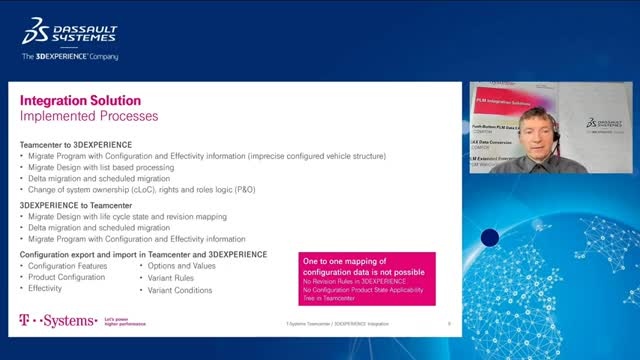 A real customer project is used to illustrate the various components of a comprehensive integration and migration platform between 3DEXPERIENCE and Teamcenter. The project illustrates how a SOA web service backbone allows to flexibly orchestrate and adapt the meta data and file exchange between complex PLM systems.