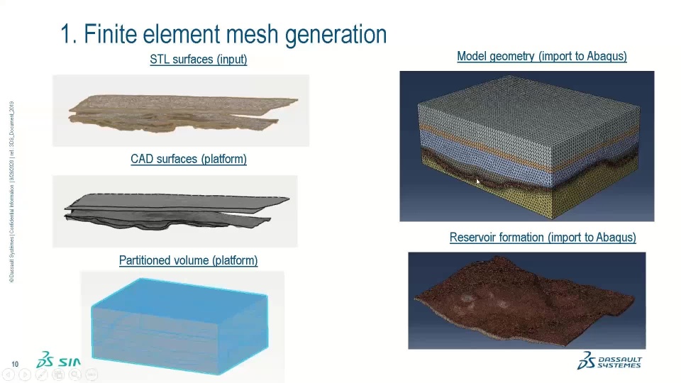 The Volve field is a North Sea oil field with a complete set of subsurface and production data made available by Equinor. We construct the 3D mechanical earth model of the Volve field and perform geomechanical assessments using ABAQUS and compare the simulated reservoir deformation with the 4D seismic survey of the Volve field. As compared to other modeling technologies, the presented modeling and simulation (MODSIM) workflow (1) makes the process of model creation more efficient and streamlined using currently available tools on the 3DExperience platform, (2) facilitates the model creation to many users and enables the scalability of the solutions, and (3) maintains the 3D mechanical earth model synchronized with geophysical interpretations and revisions to the geological subsurface models. This workflow provides physics-based solutions to complex structural models, complements reservoir simulation in the production stage, and potentially creates savings across the entire asset lifecycle.