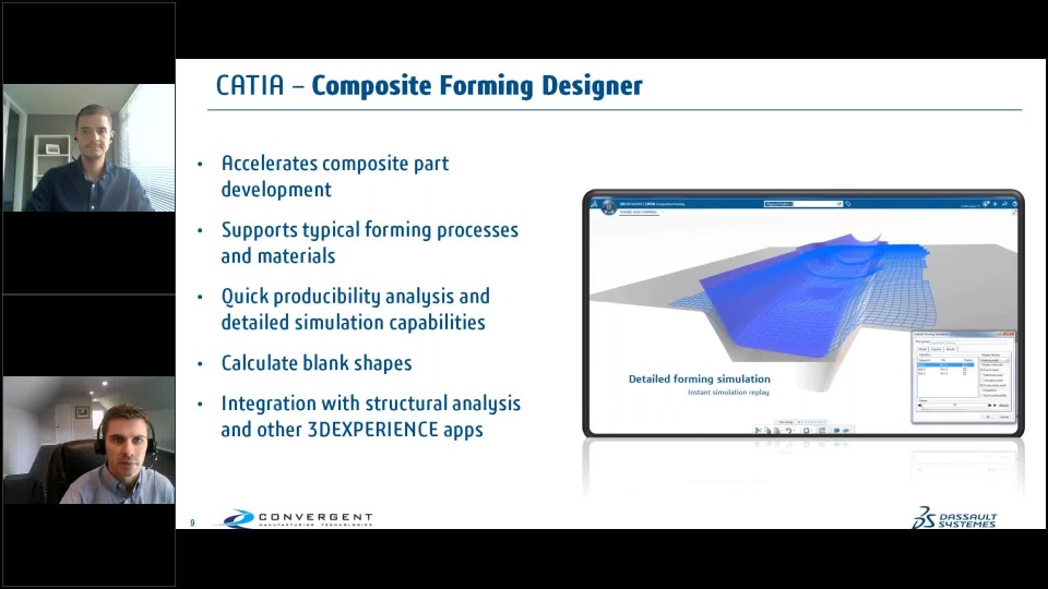 This is why Dassault Systemes and Convergent Manufacturing Technologies have teamed up to develop an integrated workflow that allows designers and manufacturing engineers to simulate the composite forming process with disruptive, yet scalable software technologies.