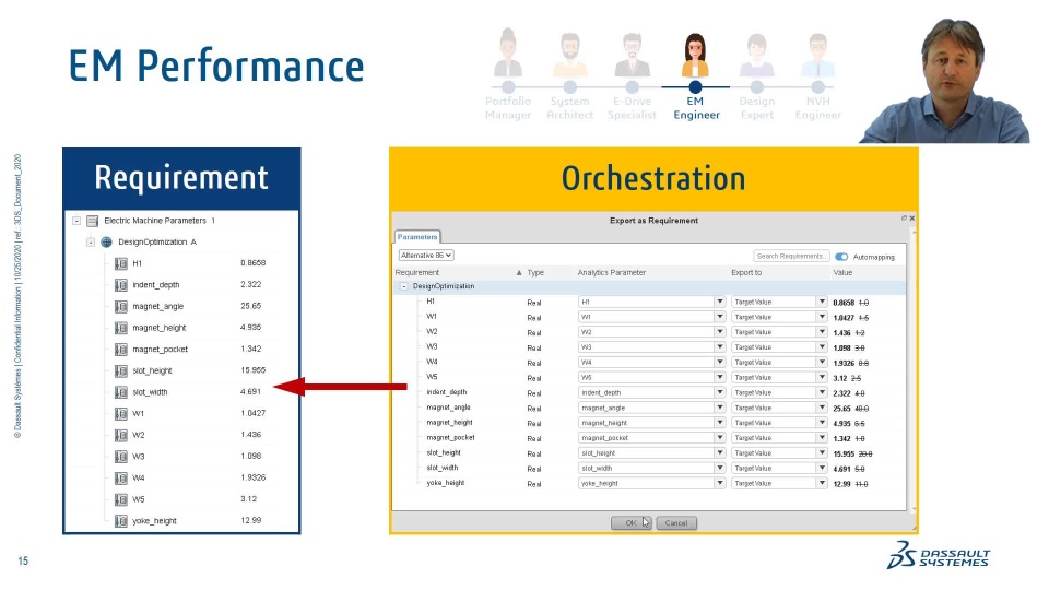 Connecting the dots between requirements, design and simulation is the key aspect of MODSIM and the foundation for the development of complex systems. Digital continuity allows the physical behavior of the final product to be virtually evaluated and optimized across multiple domains. These aspects shall be demonstrated within the 3DEXPERIENCE platform by the example of an electric drive development cycle.