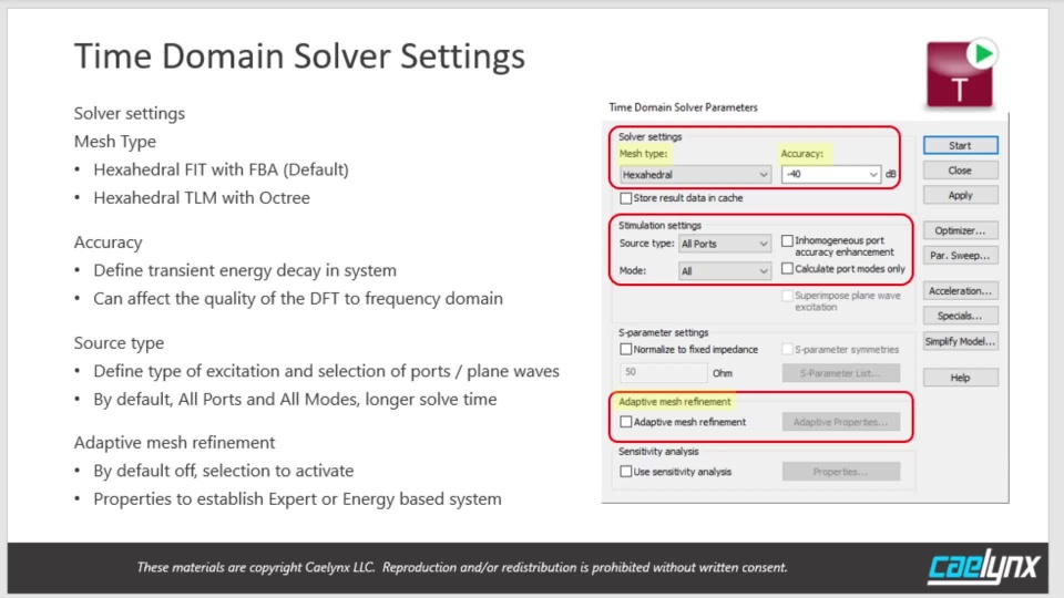 A key benefit of CST Microwave Studio is the broad selection of high frequency solvers from two general based solvers, Time Domain with hexahedral meshing and Frequency Domain with tetrahedral meshing, as well as special purpose solvers including the Integral and Asymptotic which are both triangular surface meshing. We will review user defined meshing methods and best practices as well as solver settings that affect the mesh quality and solution convergence, and how reproducing results in different domains and meshing techniques can contribute greatly to the confidence in simulation results