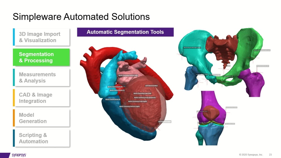This presentation will discuss how Synopsys Simpleware software is being used to reconstruct 3D image data (such as MRI and CT) and generate high-quality meshes for Finite Element (FE) packages such as SIMULIA Abaqus. In this talk, we will provide a concise overview of the various stages to producing image-based models, as well as recent developments in automated image segmentation using machine-learning. Additional details will also be given of industry-specific applications and case studies where Simpleware software and Abaqus have been implemented to solve real-world challenges.