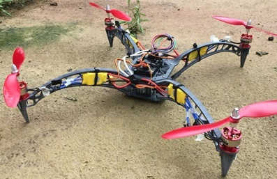 In order for a quadcopter to be able to perform a mission, his structure must support the loads of the mission's activities. However, a heavy structure directly impacts the performance of this aircraft. In this way, this article aims to execute a structural design for a remotely piloted aircraft using modern mass reduction and manufacturing techniques such as topological optimization and additive manufacturing. The proposed quadcopter must support the mass of all components, loadings imposed by the motor thrust and a camera as a payload with a 150 gram. Thus, the first step performed was the requirements analysis to determine what is necessary for the execution of the proposed mission, this step allowed to select all the components that make up the aircraft and, therefore, start to create the CAD nominal model. Subsequently, the initial structural design was performed using the finite element method. The first structural calculations aimed to validate the nominal geometry in relation to the loading conditions imposed by the motor thrust. The initial structural validation allowed to proceed with the topological optimization of the aircraft component directly responsible for engine loading. The objective function imposed was to minimize the mass and the restriction of 1.2 times the nominal displacement. The optimized model was manufactured via additive manufacturing and, as a result, a total mass of 36 g was obtained, ie the component mass was reduced by 45.5% what results in a reduction by 75% of safety coefficient. Therefore, the topological optimization and additive manufacturing allowed to manufacture a new structural with lower mass.