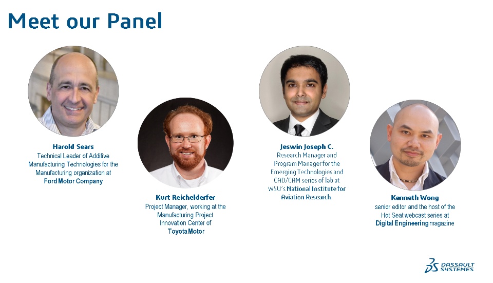 Harold Sears is Technical Leader of Additive Manufacturing Technologies for the Manufacturing organization at Ford Motor Company. He is known internally as Ford’s “3D printing futurist” and is identified as a key person for driving Additive Manufacturing within Ford. he has responsibility for the integration of Additive Manufacturing technologies within the global Manufacturing organization and acts as an internal consultant for the company. | |