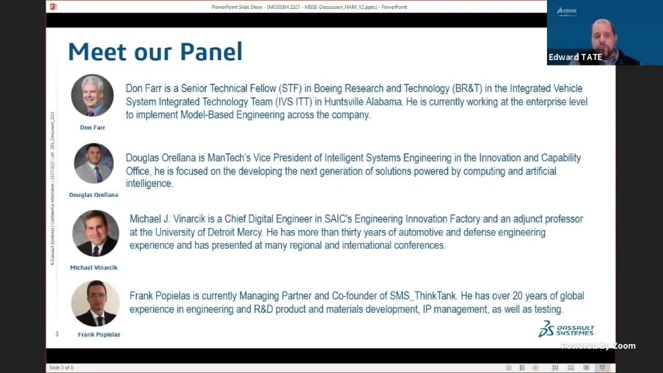 Don Farr is a Senior Technical Fellow (STF) in Boeing Research and Technology (BR&T) in the Integrated Vehicle System Integrated Technology Team (IVS ITT) in Huntsville Alabama. He is currently working at the enterprise level to implement Model-Based Engineering across the company. | |
