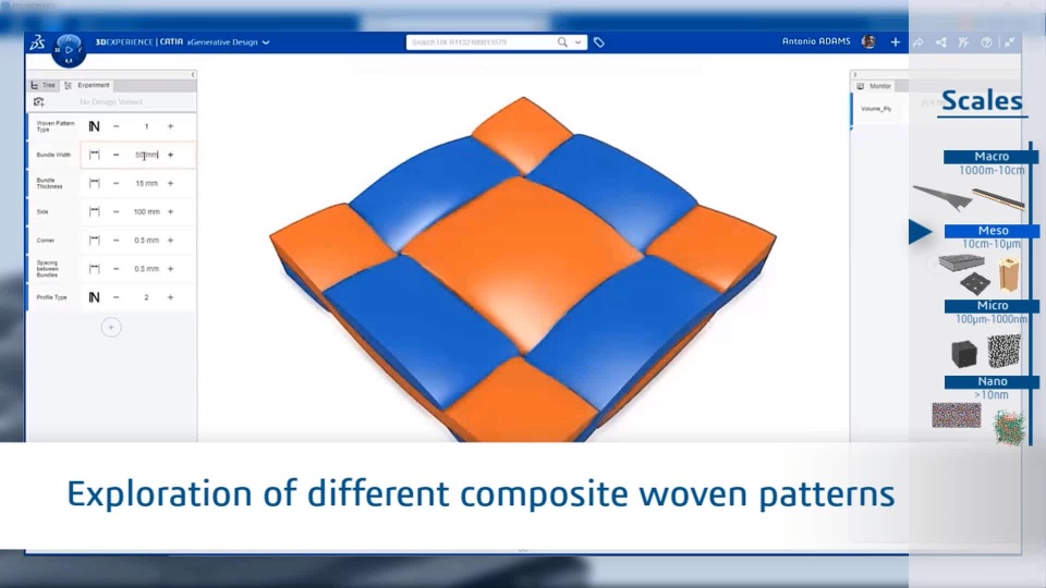 - At a meso scale, you can explore different composite woven patterns and model Inclusions, structure or long fibers components for structural simulations