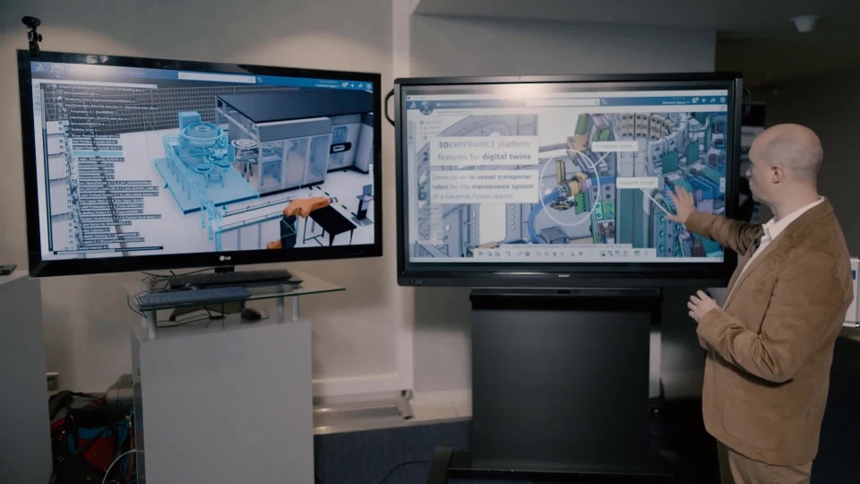 In this technical example, an approach is demonstrated on how to drive and monitor a robot inside a tokamak reactor capsule during maintenance. The investigations were embedded in the research project for ITER, one of the most ambitious energy projects in the world. Due to very high temperatures and radiation, the tokamak itself is a zone better not trespassed by humans or sensitive equipment. Therefore, to operate and monitor the real system behavior, a modeled digital twin of the maintenance robot system can be used and simulated instead. Even trainings of the maintenance process can be conducted with this twin model. In general, with the help of digital twins we can better understand and simulate the world we live in.