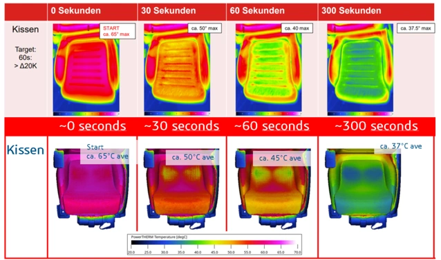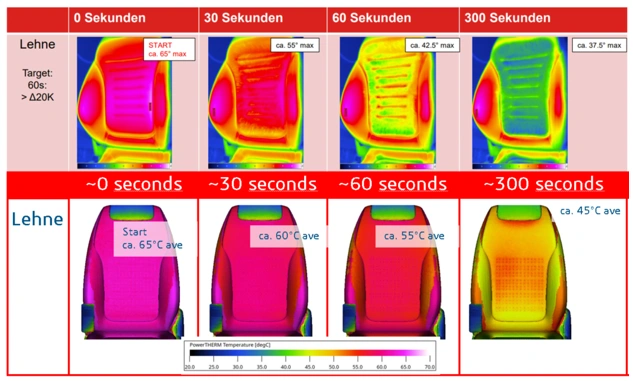 Climate seats themselves have fans integrated to generate an airflow through the cushion and/or backrest foam (see Figure 1). There are different cooling systems available: pressing/sucking environmental or actively cooled air through the seat, for example. Furthermore, to ensure the distribution of airflow through the seat, several material layers are assembled (see Figure 1). This is because, depending on the body region, different degrees of airflow are felt as “comfortable” (e.g. kidneys vs. buttock).