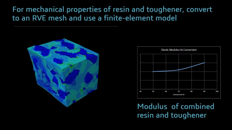 By curing a resin with a toughener, its sturdiness can increase. Thanks to a Multiscale simulation, you can accurately estimate this improvement based on the rate of the reacted resin.
