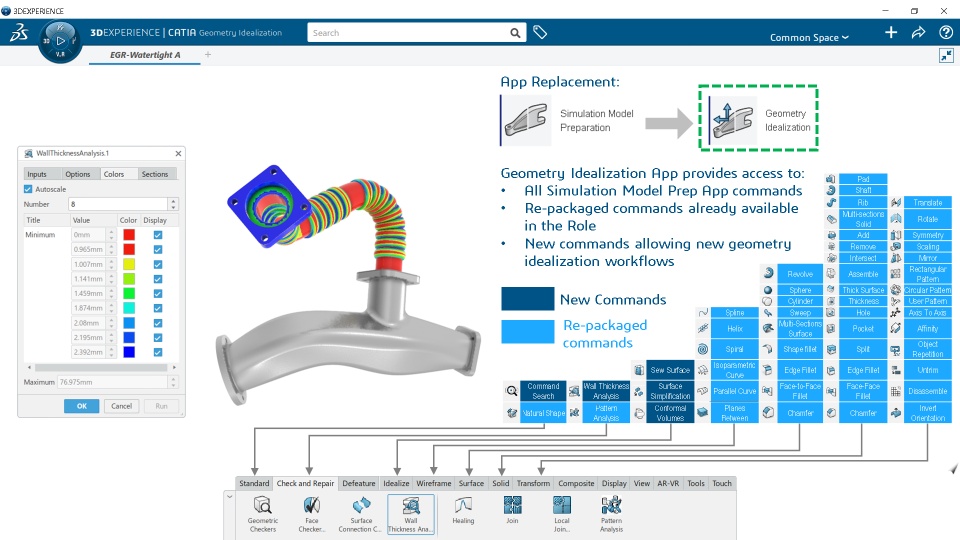 For roles BSO, EML, SNE, SYE and OPZ, five new commands not previously available have been added and 47 commands from Part Design Essentials, Generative Wireframe &Surface and Natural Shape are now directly accessible in Geometry Idealization: