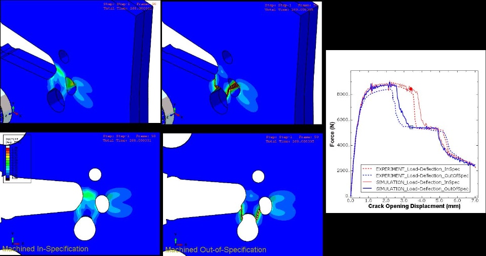 Lance also provided the two Abaqus Explicit input files that were used to generate the animation above. The Sandia report noted how different specimens had different tearing patterns, and Lance showed in these analyses that this was due to the machining differences from specimen to specimen. The Sandia report spoke to this issue, that is, some specimens were "in-spec" and others were "out-of-spec" when compared to the original specifications of the specimen geometry.