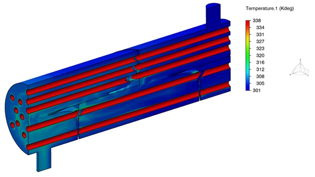 SIMULIA R&D has another great fluids-based physics simulation example to share with you as part of R2022x GA. In this example, titled Heat Exchanger Efficiency, you learn how to define and run a steady-state fluid flow simulation for a crossflow heat exchanger. After running the simulation, you visualize and analyze the pressure, temperature, and flow velocity of the fluid inside the heat exchanger, as well as the contours of the fluid flow. Based on the results, the example points to aspects of the heat exchanger that you could redesign to optimize heat transfer.