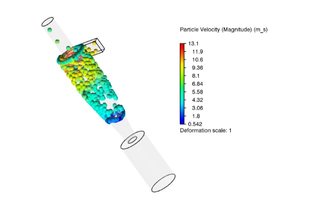 SIMULIA R&D has a new fluids-based physics simulation example to share with you as part of R2023x FD02. In this example, titled Particle Flow in a Cyclone Separator, you learn how to use the 3DEXPERIENCE platform to define and run a transient, particle-flow simulation. After running the simulation, you visualize the flow of particles and the development of vortices by creating animations, and you analyze the flow velocity and separation efficiency (that is, the fraction of particles that the dust collector traps) of the cyclone separator.