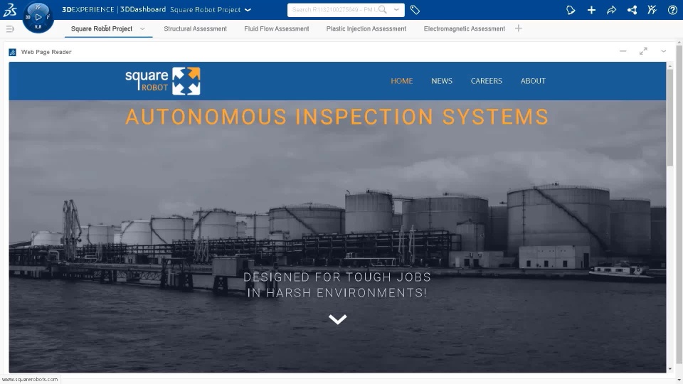 Square Robot: To illustrate the value of this portfolio for the SOLIDWORKS community, I will use a design coming from Square Robot, an innovative company building systems for submerged oil and gas inspections. Such a system is designed for tough jobs in a harsh environment. It has to be safe and reliable.
