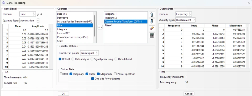 - Numerical integration with: Left hand, Right hand, Trapezoidal and Simpson methods. As numerical derivative, it integrate in both time and frequency domains.