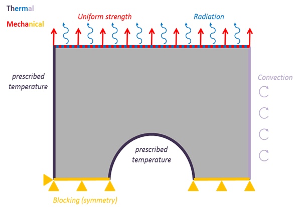 In this hands-on session it will be demonstrated how to set up basic requirements for a sequentially and fully coupled thermal mechanical analysis. For this purpose, you are going to use Abaqus to analyze a flat rectangular plate with a circular hole at its center in a state of plane stress. Both the thermal and mechanical responses are sought. The step-by-step procedure for the finite element models development and the analysis of problem involves the following nine chapters: