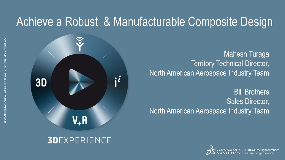 My name is Mahesh Turaga and I am the Territory Technical Director for SIMULIA Aerospace. Recently I presented at the Global Process Data Interoperability Summit (GPDIS). Below I have attached the value-oriented presentation which focuses on an optimization workflow to achieve a manufacturable, reliable and robust part. Draping simulation using CMA, structural analysis using Abaqus, and minimizing cost & weight are all tied together in an optimization flow to come up with a few optimized designs which are manufacturable. Variability is introduced in a few variables to come up with a final reliable and robust design. I hope you enjoy it.