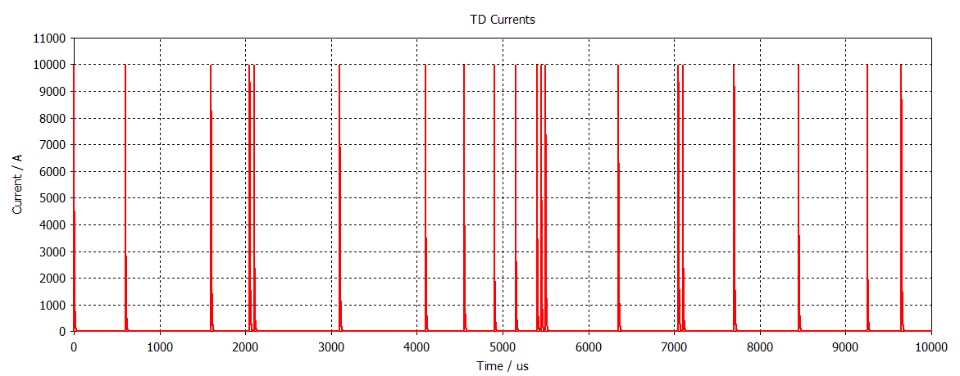 Typically a CST transient co-simulation workflow of a single pulse up to 100 microseconds on HPC hardware already takes several hours. With that in mind multiple stroke pulse pattern and multiple burst pulse pattern simulation are even not feasible. If for instance a single pulse simulation up to 100 microseconds would last for about 4 hours a multiple stroke pulse pattern simulation up to 1.5 seconds would last for 60000 hours or 2500 days. A multiple burst pulse pattern simulation would probably last for about 1033 days. Even if the the 3D electromagnetic simulation of the CST transient task with combine results workflow takes hours or even some days it still allows to simulate multiple stroke pulse pattern and multiple burst pulse pattern events in a reasonable time.