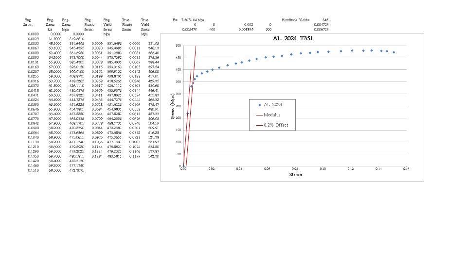 This is test data I've had for a very long time. I have used it to show people how to create a power law material model in Excel. These PowerPoint slides (taken from a one-day SCC class several years ago) explain a bit about power law plasticity models. There is a long history of the use of various types of power laws in plasticity. The standard power law model in Abaqus is the Johnson-Cook form.