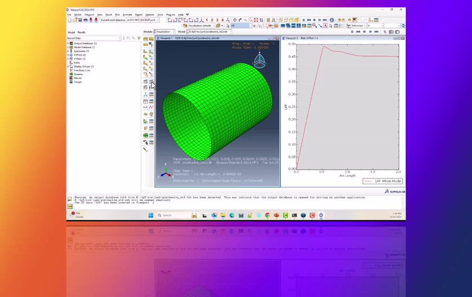 This video shows how to animate the load proportionality factor (LPF) alongside the deformed structure from a RIKS simulation in Abaqus/Standard. Please refer to the documentation at help.3ds.com to learn about the RIKS method and how it can be used to study the post-buckling behavior of structures.