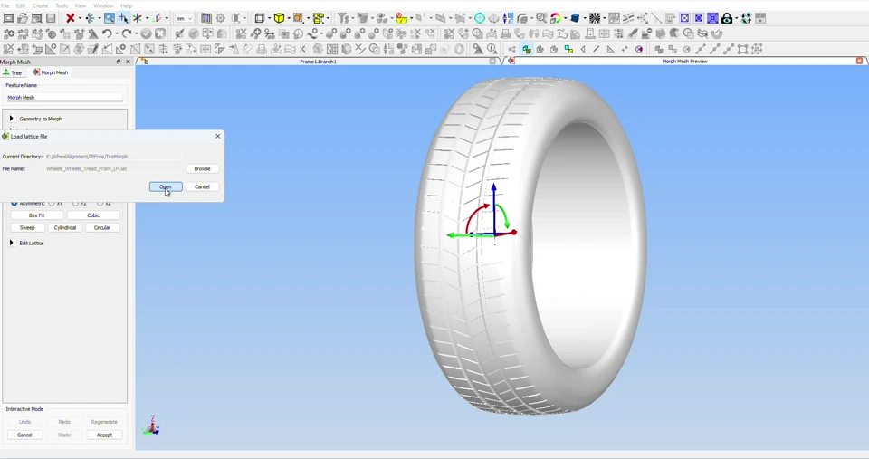 Once these inputs are provided, the tool generates a lattice geometry that can then be imported back into the same frame, allowing for the creation of the final deformed tire geometry.
