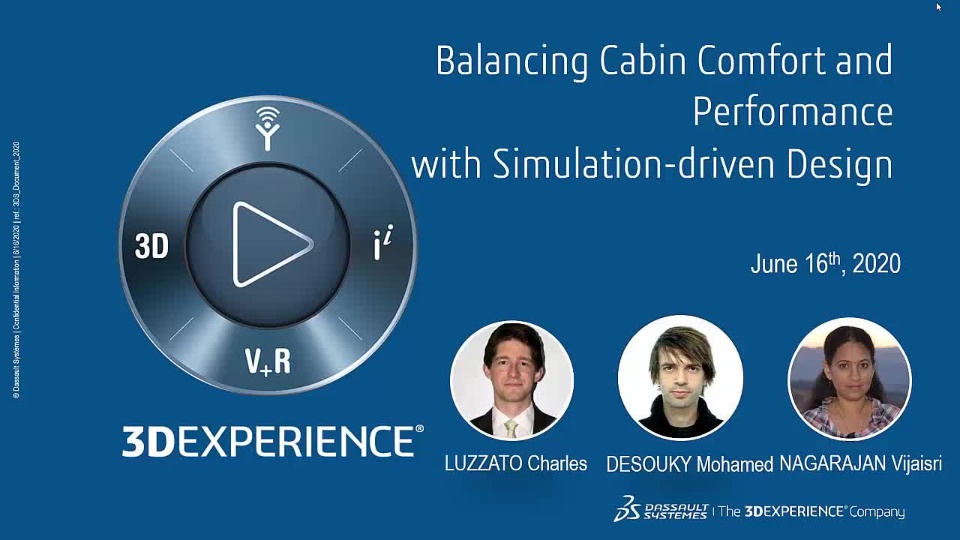The solutions presented in this webinar will tackle structural, electromagnetic, fluid dynamic, and acoustic topics. Examples will be provided to show how the thermal comfort of passengers directly affects the range of electrical vehicles, or how noise improvements can effectively be communicated to decision makers.