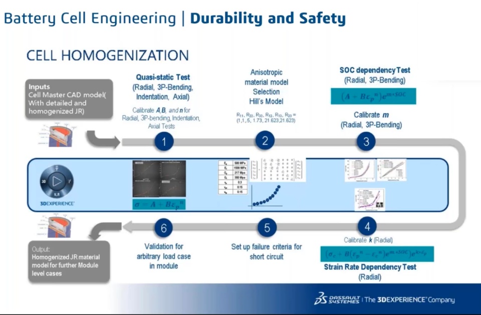 The presentation gives an overview of the Dassault Systemes battery modeling capabilities from atoms to system. Focus in this presentation is placed on 3D modeling aspects from parametrized designs to engineering KPIs: a) 3D Cell engineering, including thermo-electrochemistry in charge/discharge applications and associated swelling, short circuit, and thermal runaway; and b) Module/Pack Engineering focusing on durability, thermal management, and safety applications. The 3DEXPERIENCE platform can be used to facilitate collaboration across entire organizations and functions. In this example, we will demonstrate how the 3DEXPERIENCE platform can be used to facilitate the design of an e-drive motor, from requirements and test planning to conceptual design and all the way to detailed design and performance analysis.