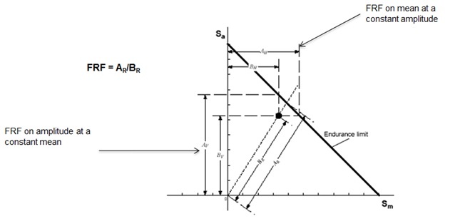 The Fatigue Reserve Factor (FRF), also referred as the Fatigue Reliability Factor, is a linear scale factor obtained from mean Stress diagrams such as Goodman, Gerber etc. They are used to calculate stress based fatigue safety factors (FRF) for a specified life.