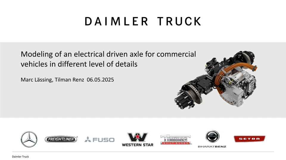Electromobility for commercial vehicles requires new powertrain concepts with new challenges and phenomena regarding NVH and durability. For the new eActros 600, a new electrical driven rear axle was developed, using Simpack as a simulation tool for various load cases and analyses with different requirements on level of details, computation time and result accuracy.
