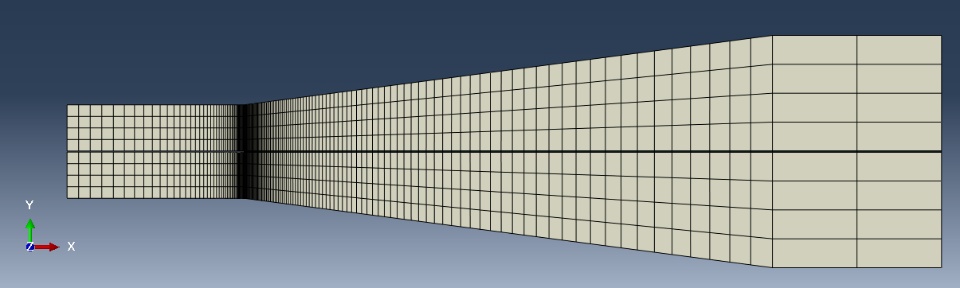 The ASTM spec, D 3433, shows a geometry for a flat DCB and for a tapered DCB (TDCB, aka Contoured DCB) test specimen. The images above show the geometry and two different meshes for the tapered DCB attached to this post.